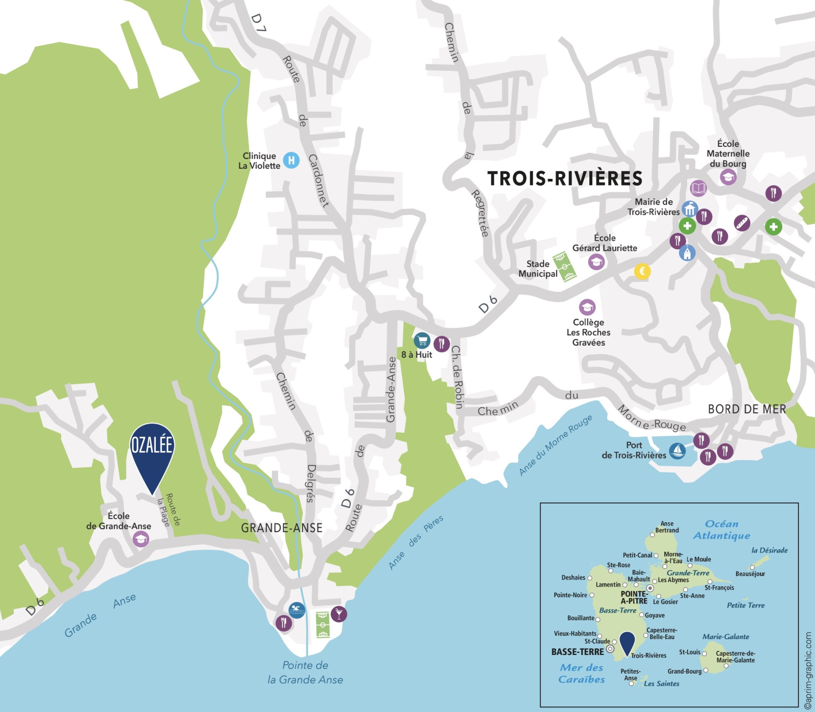 À proximité de la belle plage de Grande Anse et de l'embarcadère pour Les Saintes et Marie-Galante